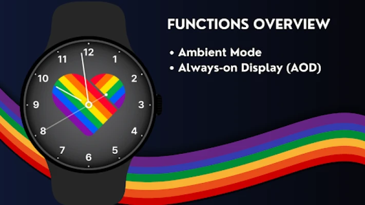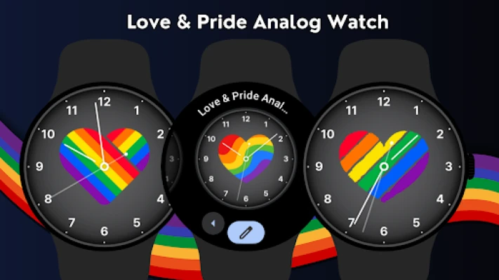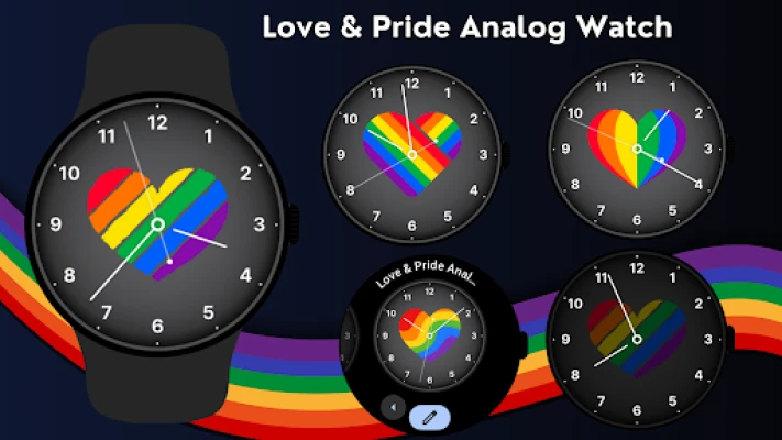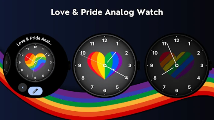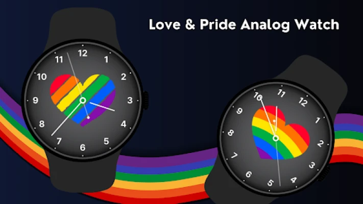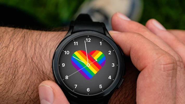 Celebrate love, unity, and self-expression with the Love - Pride Analog Watch—a stylish analog watch face for Wear OS featuring a beautifully painted rainbow heart at its center. Designed with clarity and elegance, it symbolizes support for the LGBTQ+ community while keeping a classic time-telling aesthetic.