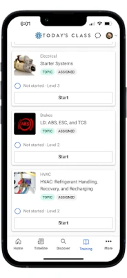 Traditional auto shop training is difficult to fit into the workday. With the Today's Class app, training takes just minutes daily, so you never have to choose between training and productivity again. Our approach customizes learning for each team member, with focused, bite-sized information that boosts knowledge retention. Train your team on the job, see measurable progress, and meet your business goals.