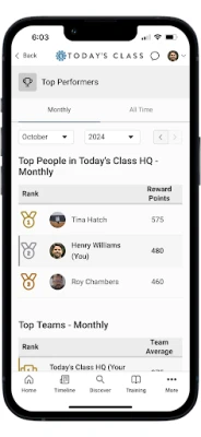 Team Engagement & Rewards Research has shown that fun, engaging training improves retention. As users complete daily training, they earn points and compete with other team members. A little friendly competition boosts engagement.