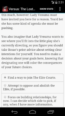 "VERSUS: The Lost Ones" is a thrilling 123,000-word interactive novel, the first in a new series, by Zachary Sergi, author of our best-selling "Heroes Rise" trilogy. Your choices control the story. It's entirely text-based--without graphics or sound effects--and fueled by the vast, unstoppable power of your imagination.